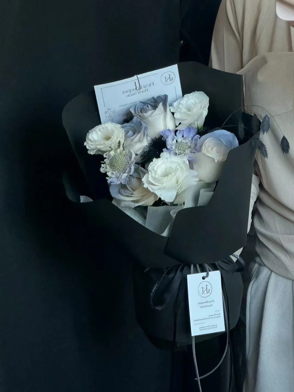 Designed with a cool-toned palette and modern aesthetic, this bouquet is especially suited for men who appreciate minimalism, elegance, and thoughtful design. Sophisticated and understated, it's a refreshing alternative to traditional floral gifts. 🌫💙