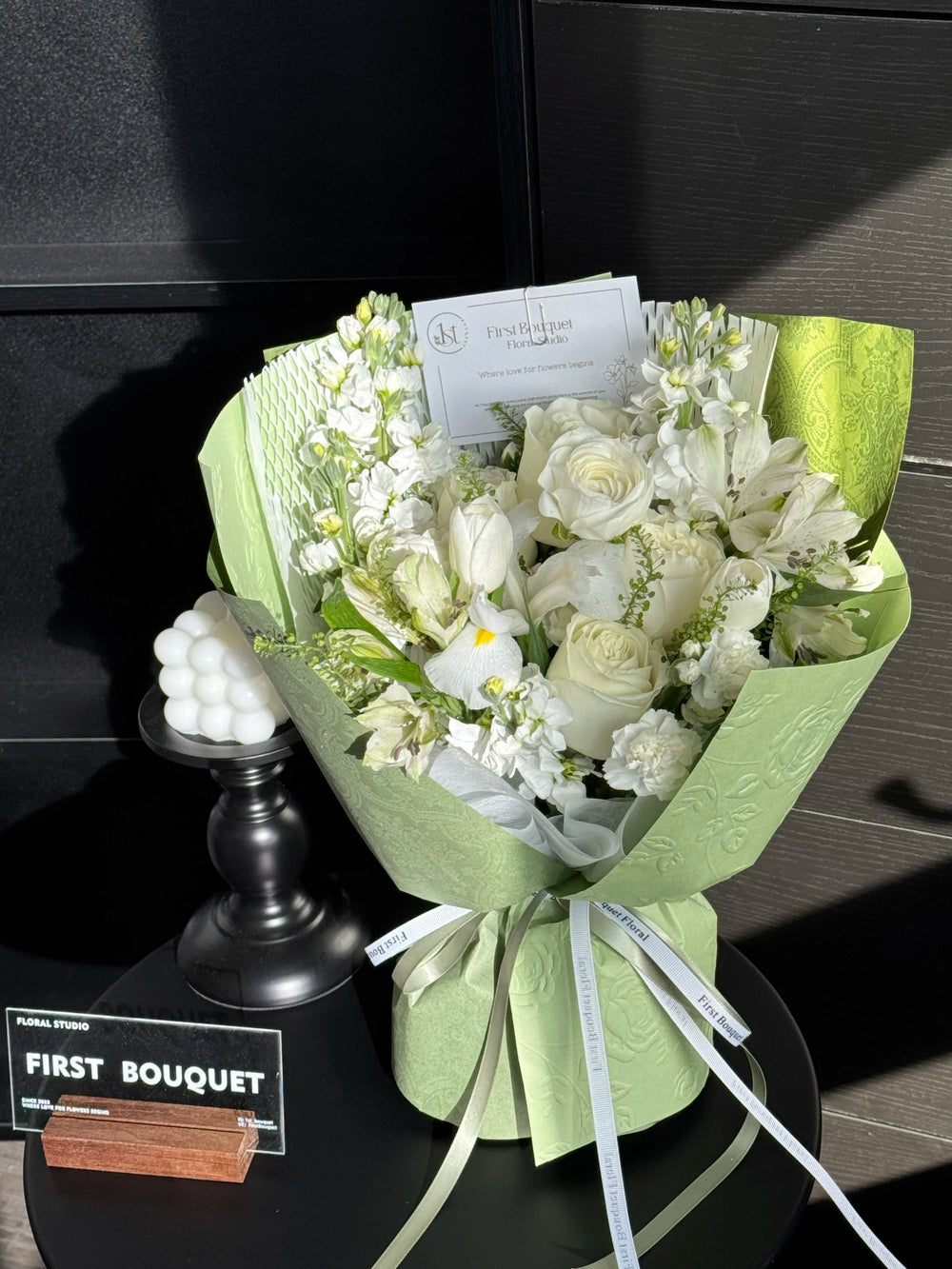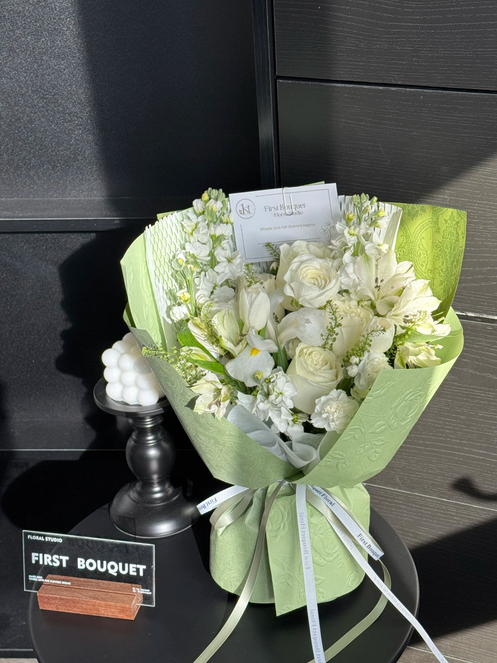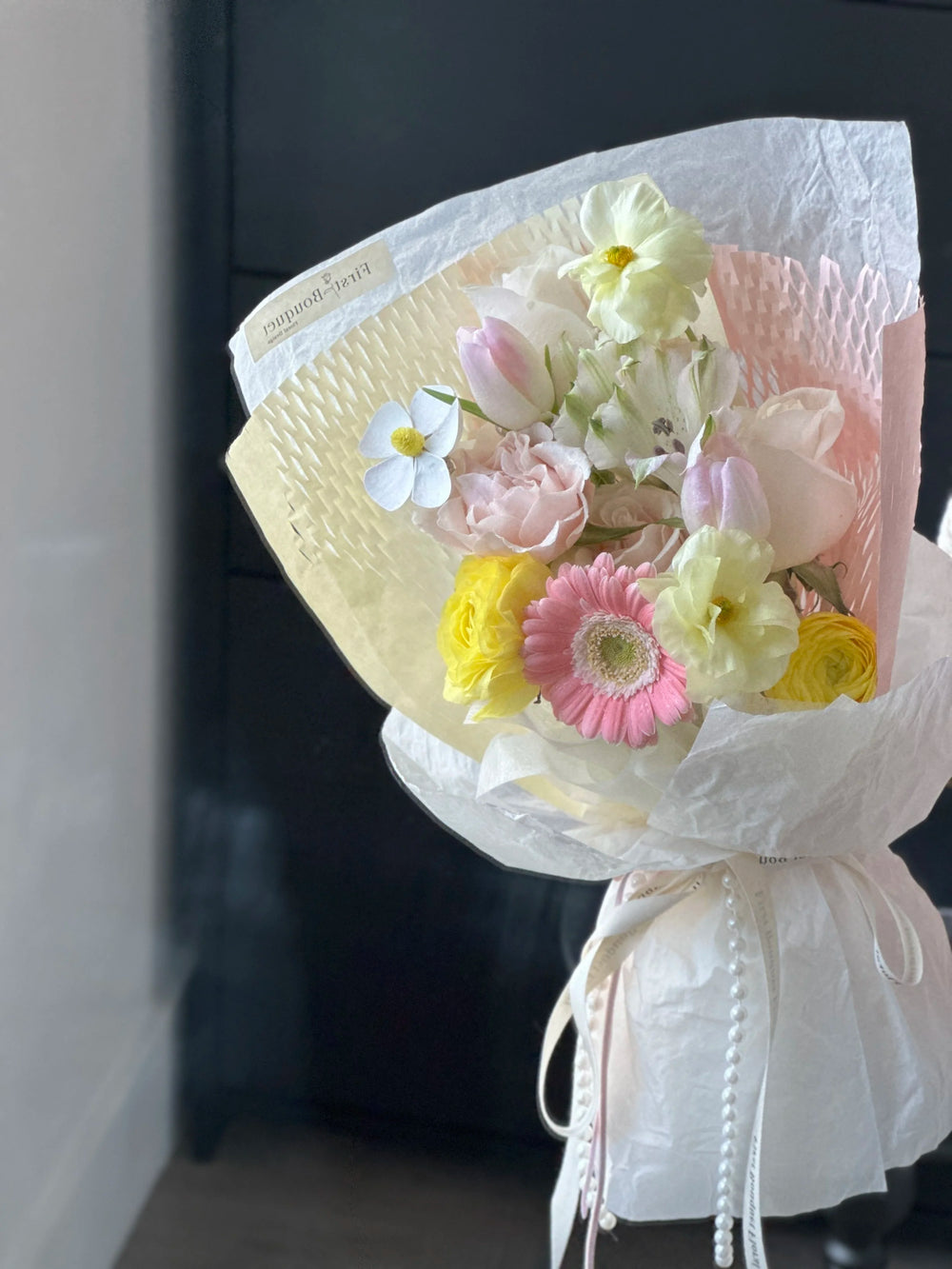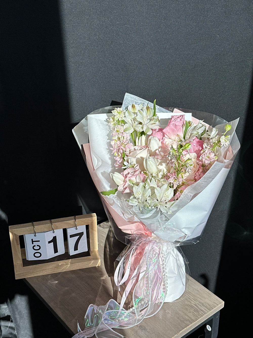 插花可能包含染色花、喷绘花、保鲜花、干花元素或羽毛。如果您偏爱全天然的鲜花,我们建议您选择我们的韩式系列。