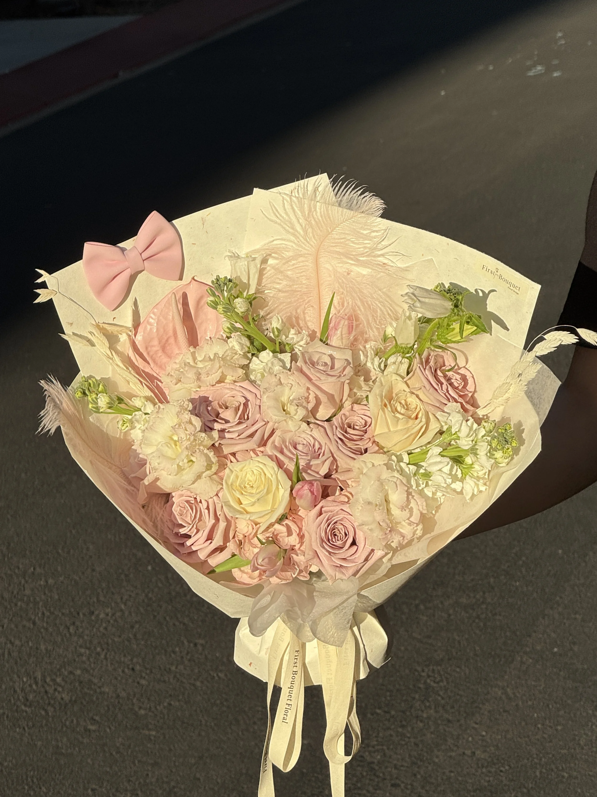 We specialize in blind box bouquets (Florakase) and custom designs for those who appreciate creativity beyond the ordinary.Simply share your preferred color palette, aesthetic, or occasion—and we’ll design a bouquet that feels as personal and meaningful as your story.