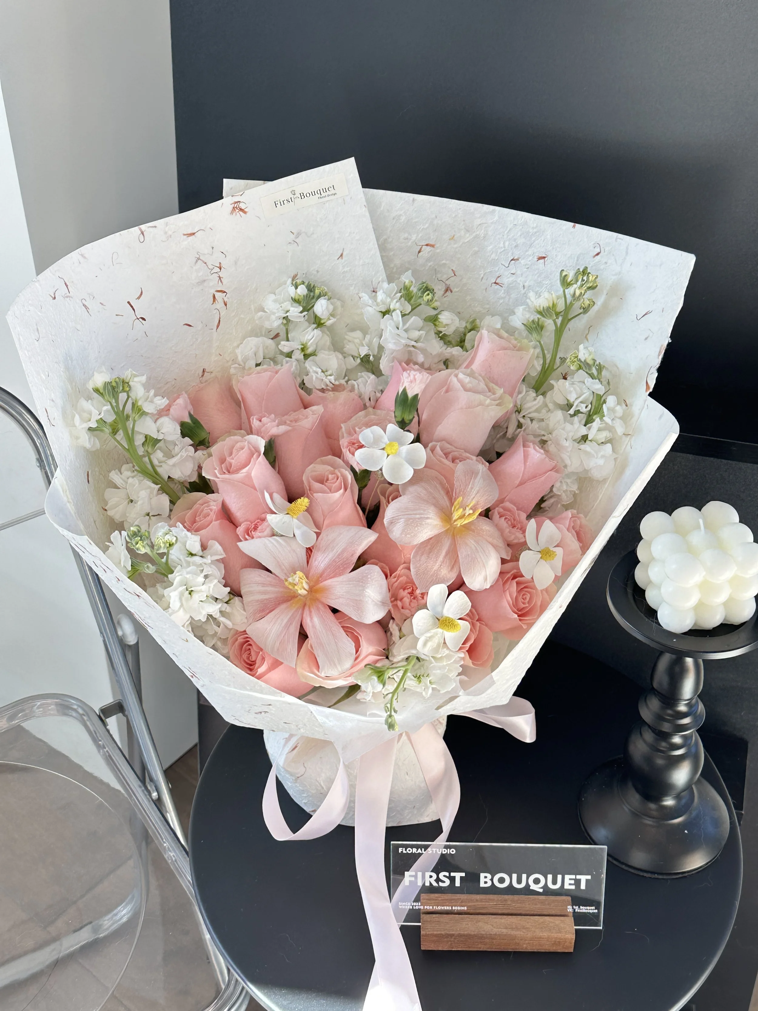 At First Bouquet, we see floral design as an art form—each bouquet is thoughtfully crafted as a one-of-a-kind creation, not just a product. From bespoke customization to convenient pick-up and delivery, we offer a personalized floral experience tailored to your needs.